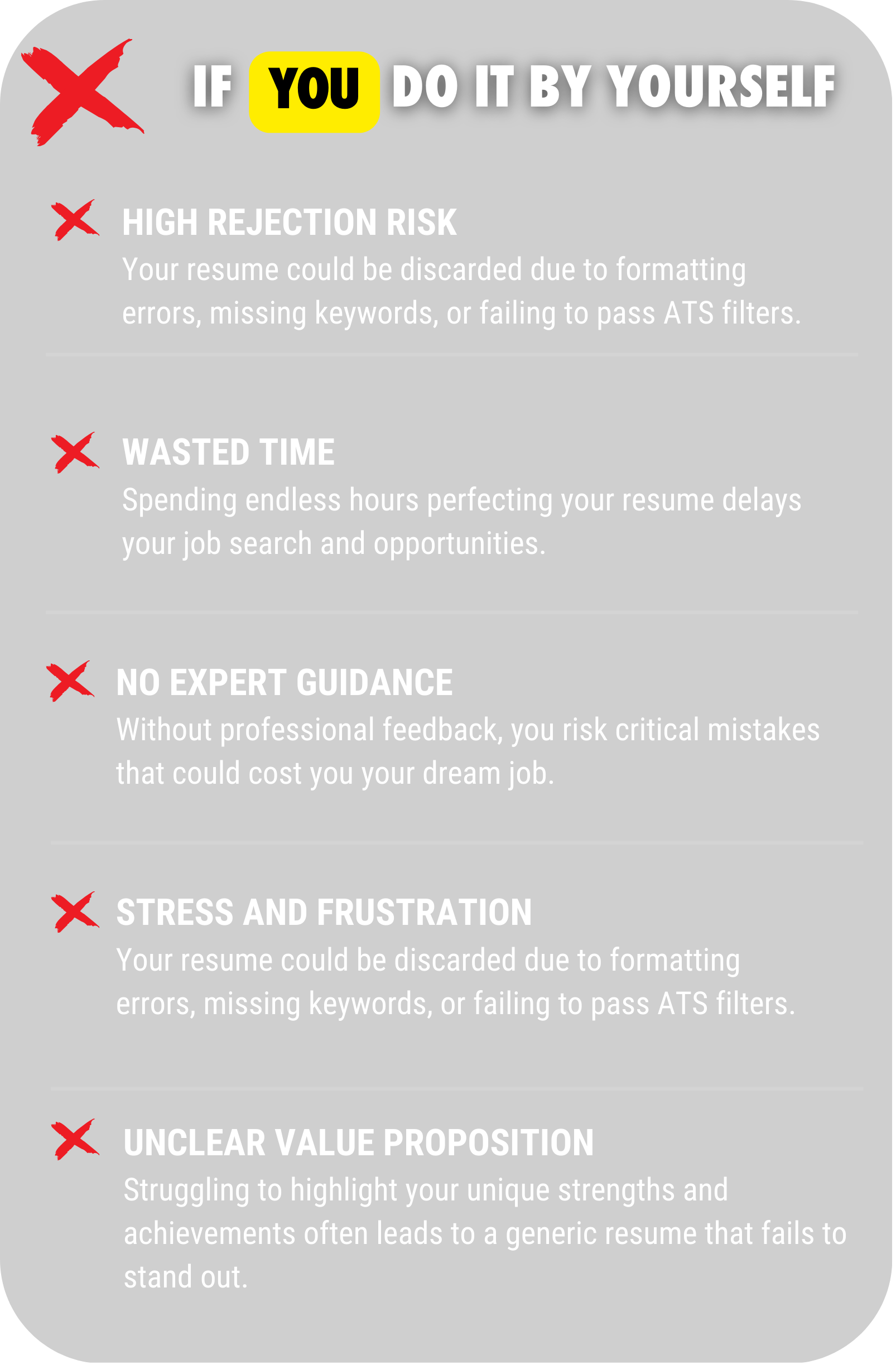 Without professional feedback, you risk critical mistakes that could cost you your dream job.